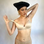 Material: wool, vintage brass studs, polyester lace, deadstock vintage satin