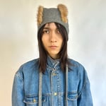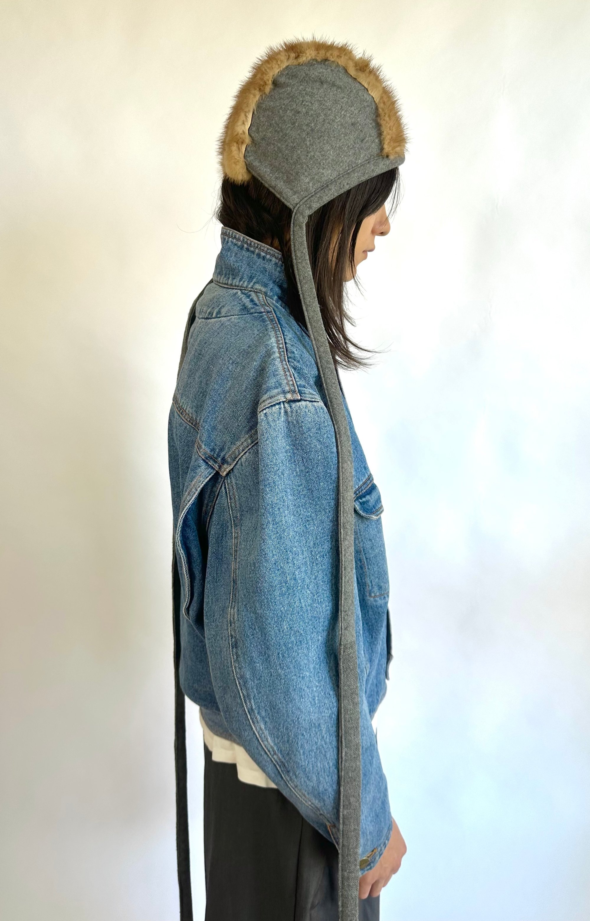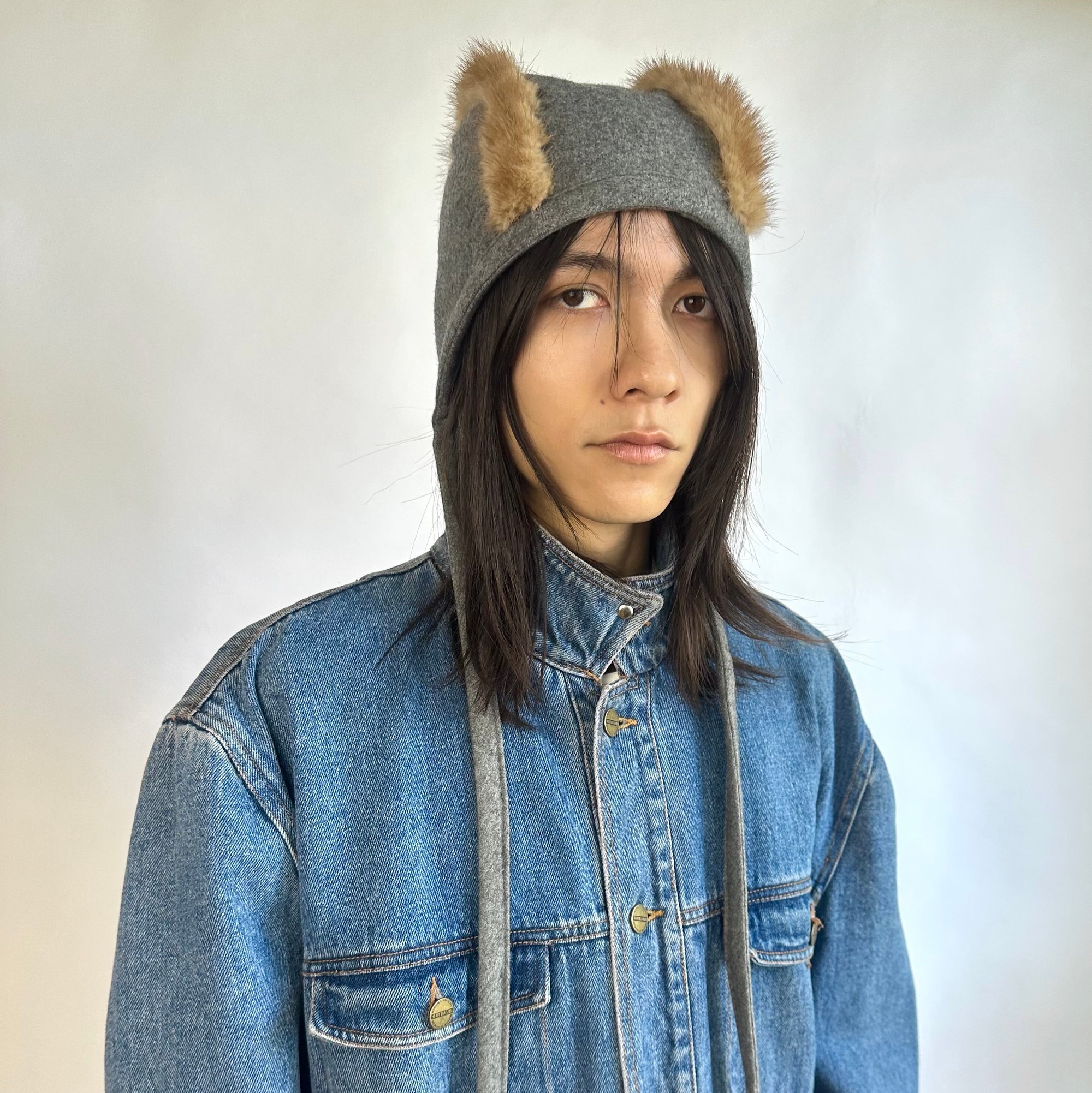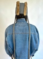 Wool coif with real fur trim and floor length straps. Vintage fur from repurposed materials.